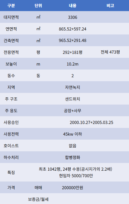 [f303019]천안시 서북구 성환읍 율금리 공장매매 1000/473p 20억원 댓글 달기 / 공장창고, 전체매물 상호불당114공인중개사사무소주소천안시 서북구 불당25로 8전화번호041-556-8400등록번호44133-224-00039담당자김희섭 지역내 다양한 매물을 소개합니다. 현장 확인 또는 문의사항은 편하게 연락주세요. 빠르고 정확하게 최선을 다하겠습니다. 매물정보