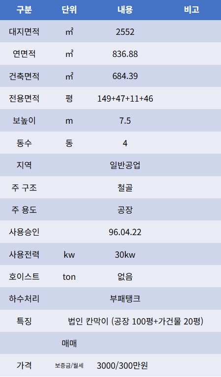 [f303022]천안시 차암동 공장 임대 100p 3000/300만원 댓글 달기 / 공장창고, 전체매물 상호불당114공인중개사사무소주소천안시 서북구 불당25로 8전화번호041-556-8400등록번호44133-224-00039담당자김희섭 지역내 다양한 매물을 소개합니다. 현장 확인 또는 문의사항은 편하게 연락주세요. 빠르고 정확하게 최선을 다하겠습니다. 매물정보